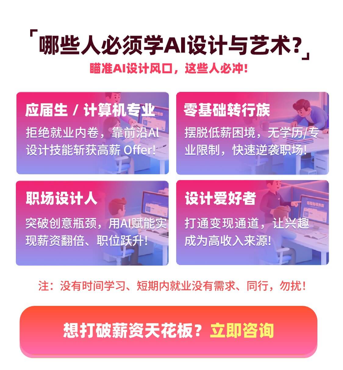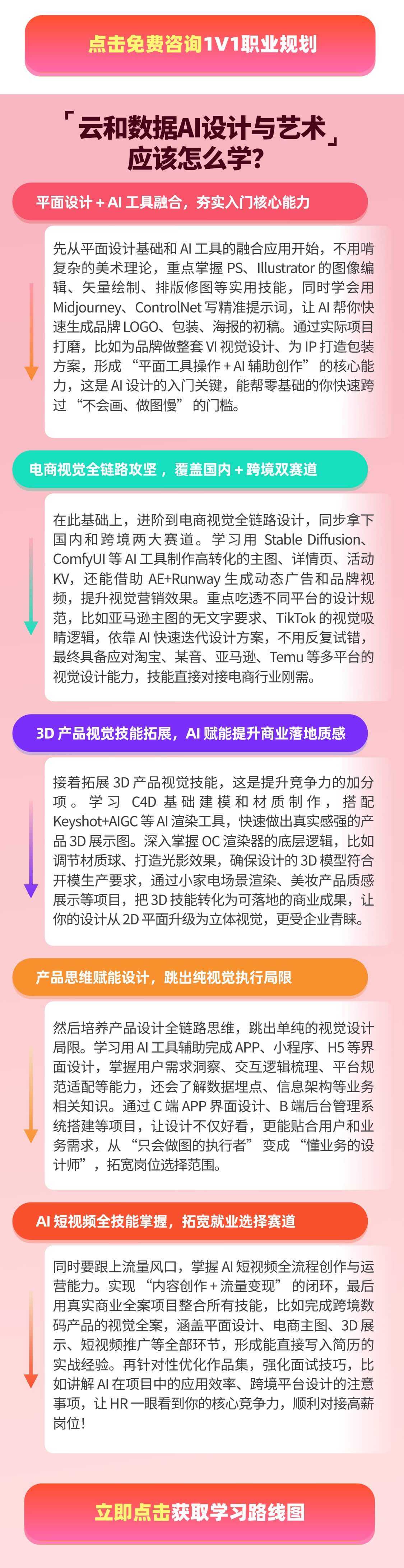 AI设计与短视频岗位认知、行业趋势与薪资水平、品牌、平面、电商、跨境电商、产品建模渲染设计、学习方法论与时间管理