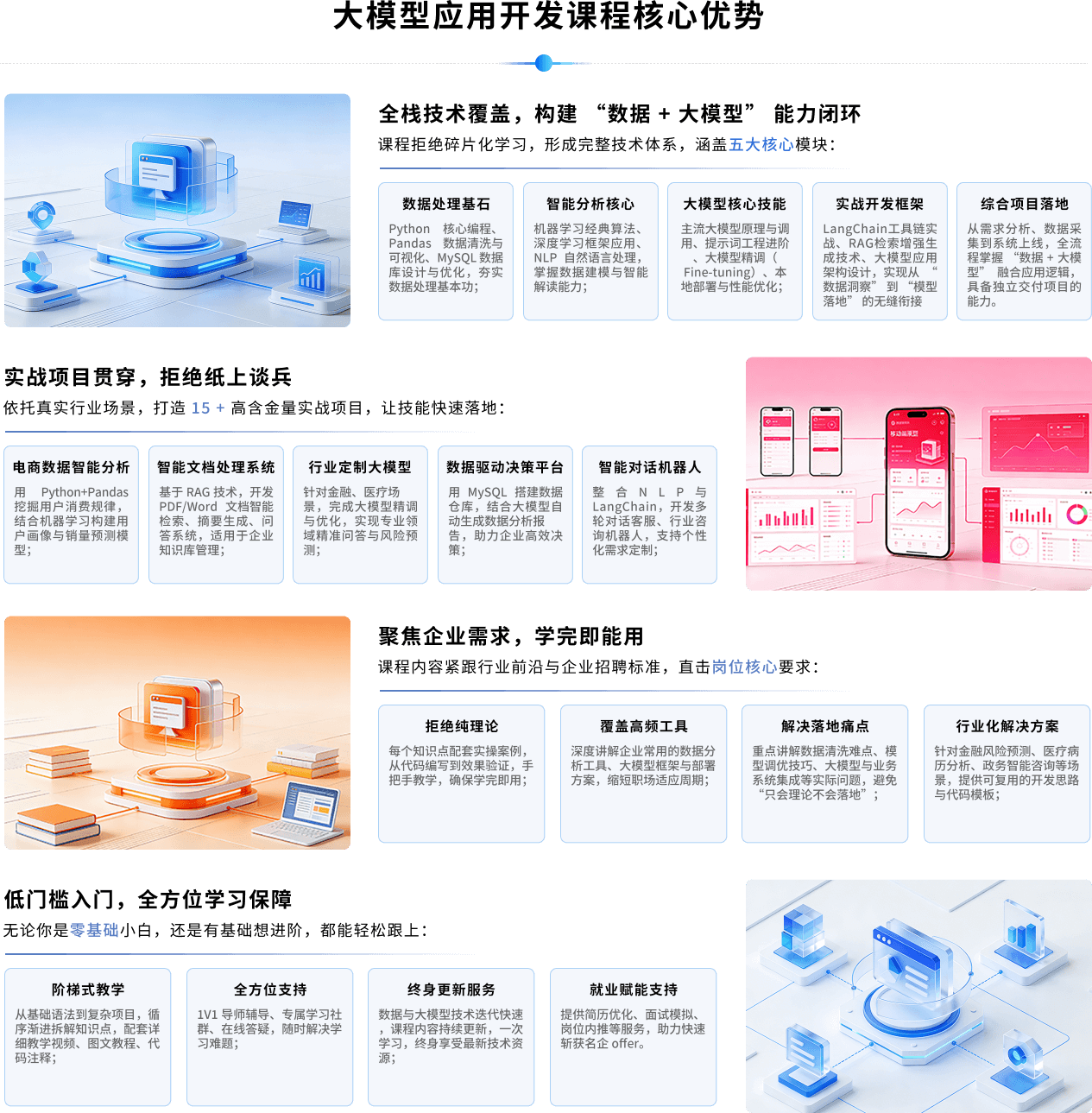 matplotlib 基础:环境配置、基本绘图流程、图表组成元素 基础图表绘制:折线图、柱状图、直方图、散点图、饼图 图表定制与美化:颜色配置、样式设置、标签与图例、网格线 高级图表类型:子图布局、热力图、箱线图、 图表