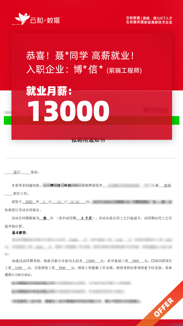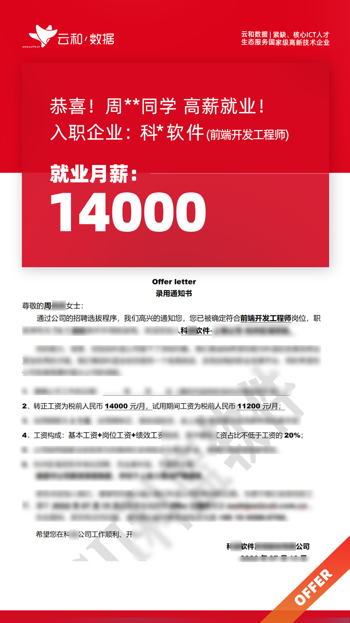喜报 | 部分学员就业喜报 第371期 作者:云和教育 日期:2022-08-23 浏览:1,706次 选择比努力更加重要人生就是一次次的挑战,一次次的成长才能慢慢的长大时光不会怠慢执着而勇敢的每一个人 上一篇:名企专场上门招聘会,持续进行中! 下一篇:喜报 | 部分学员就业喜报 第372期